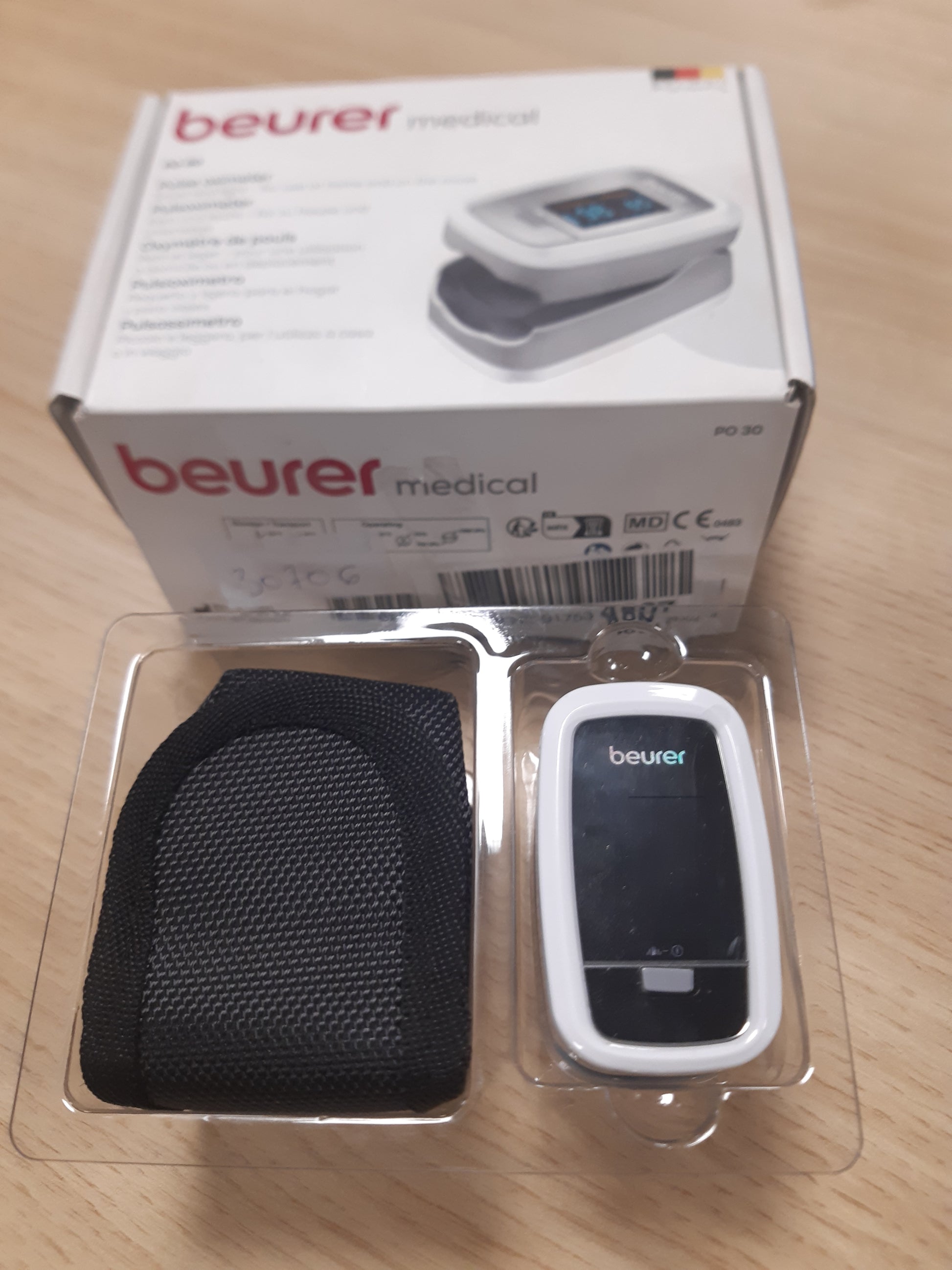 30706 - Oksimetri pulsues Beurer PO 30 (gri/e bardhë, përcaktimi i ngopjes së pulsit dhe oksigjenit arterial)